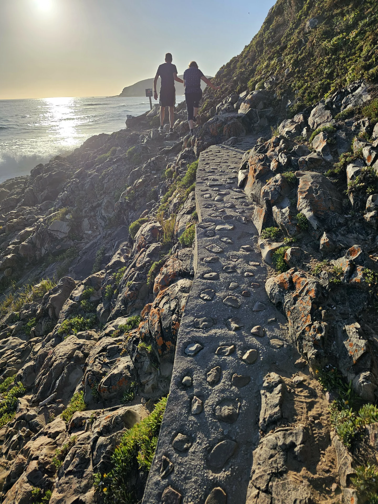 Im Robberg Nature Reserve machen wir eine wunderschöne Küstenwanderung. Die Kletterei in teilweise steilem Gelände ist eine kleine Herausforderung für Uschi, wird aber mit tollen Ausblicken auf das Meer und eine Robben-Kolonie sowie Sonnenuntergang belohnt.