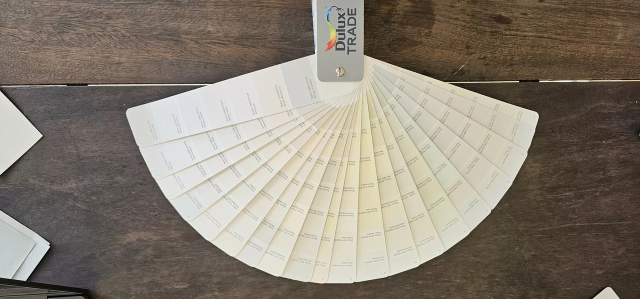 Wir treffen eine Vorauswahl, bringen verschiedene Farben quadratmetergroß an die Wände, aber den wirklich überzeugenden Farbton finden wir noch nicht. Graham will uns noch einmal eine alternative Farbe besorgen, die er kürzlich für einen Kunden verarbeitet hat. Als ich vom Einkaufen zurückkomme, präsentiert mir Frank vier Farbbeispiele in einem Raum und fragt mich, welchen Ton ich denn am schönsten finde. Schnell habe ich für mich eine Reihenfolge gefunden. Frank grinst und wir nehmen dann alle vier Farbtöne … Es ist nämlich immer die gleiche Farbe, ein helles Beige mit einer Nuance zu Apricot. Unterschiede kommen nur durch unterschiedlichen Lichteinfall und Umgebung der Farbflächen zustande. Als die ersten Räume mit dieser Farbe gestrichen ist, sind wir zum Glück sehr zufrieden mit unserer Auswahl.