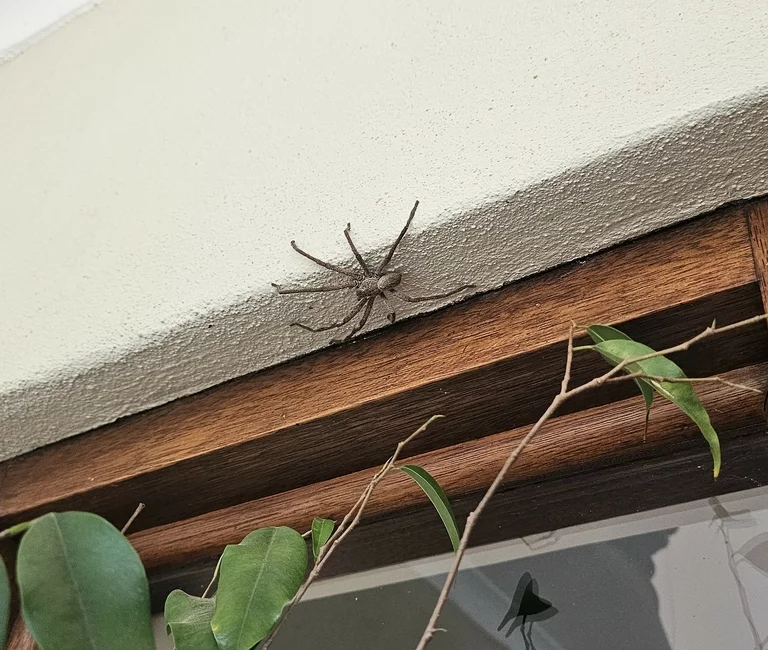 Die Arbeiten gehen weiter. Jens ist bis Dienstag mit seinen Maurerarbeiten durch. Parallel starten die Leute von Piet damit, die neuen Corniches anzubringen. Und – mal wieder abseits des eigentlichen Auftrags – macht dieses Mal Piet sich daran, die schleifende Haustür zu reparieren. Dabei schreckt ein kleines Haustier auf: eine Rain Spider, Durchmesser rund 12 cm, ungiftig … 😉