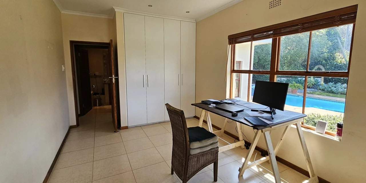Anneke hatte das Gästebett bereits für uns frisch bezogen. Bettwäsche und Handtücher aus ihrem früheren Guesthouse in Constantia haben sie uns ja dagelassen. Wir schieben das Bett im ansonsten leeren Zimmer so vor das Fenster, dass wir beim morgendlichen Kaffee im Bett freien Blick auf das Bergpanorama haben werden, und schlafen ein - die erste Nacht in unserem neuen Zuhause - mit dem Gedanken, dass am nächsten Tag die ersten Handwerker anrücken werden.